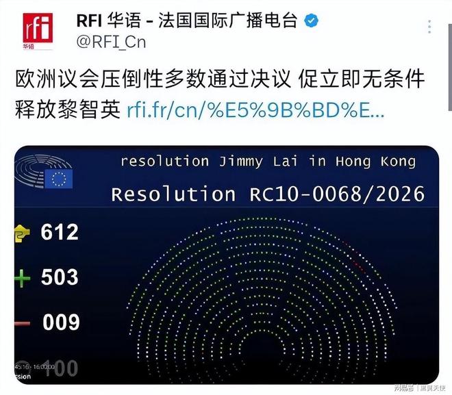 1月22日,斯特拉斯堡的欧洲议会大厅里,电子屏跳出“503票赞成、9票反对、100票弃权”,掌声雷动,很多议员情绪高涨,仿佛刚刚完成了一次“人权史上的重大胜利”。